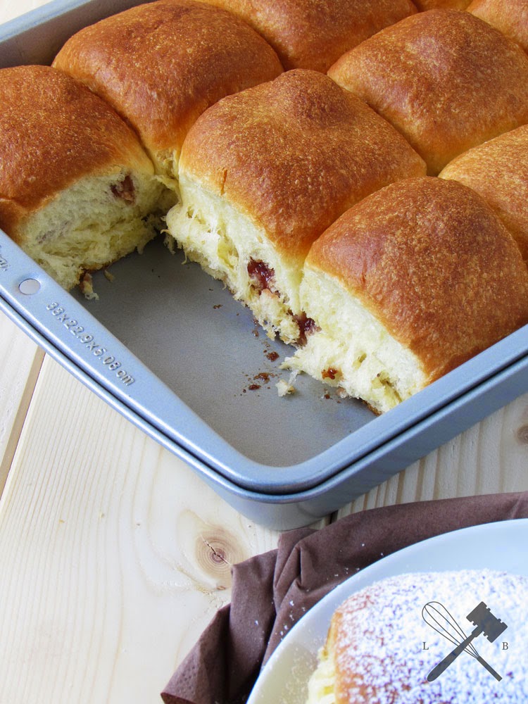 Und das übertolle – ich weiß gerade nicht, ob es dieses Wort überhaupt laut Dr. Duden gibt – ist die Füllung. Bekanntlich füllt Oma ihre entweder mit einer Mohn- oder Nussfülle, aber da ich zum Geburtstag von meiner Tante so viel selbstgemachte Marmelade bekommen habe, wollte ich diese dafür in Gebrauch nehmen. Erdbeere schien mir am Besten dafür, obwohl auch so Schätze dabei sind wie: Birne-Traube oder Pflaumen.